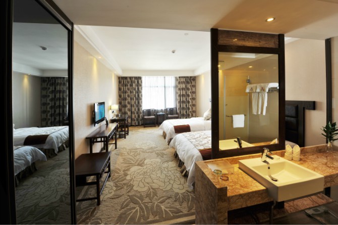 房內設施齊全,使用中央空調,37寸3D液晶電視,客房免費提供不計時國內長途電話,免費光纖網(wǎng)絡接入,紅木家具,保險箱、冰箱。酒店餐廳設有豪華餐飲包房11間。