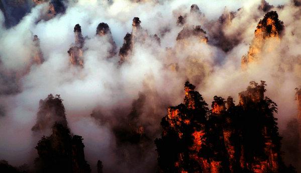 近日世界自然遺產地張家界天子山景區迎來了久雨初睛難得的好天氣,充足的雨水也隨著溫度的提升給天子山景區云海奇觀。許多來此攝影的愛好者不得不驚嘆:能有幸一睹“張家界這奇峰三千,云海奇觀,可謂此生足矣!